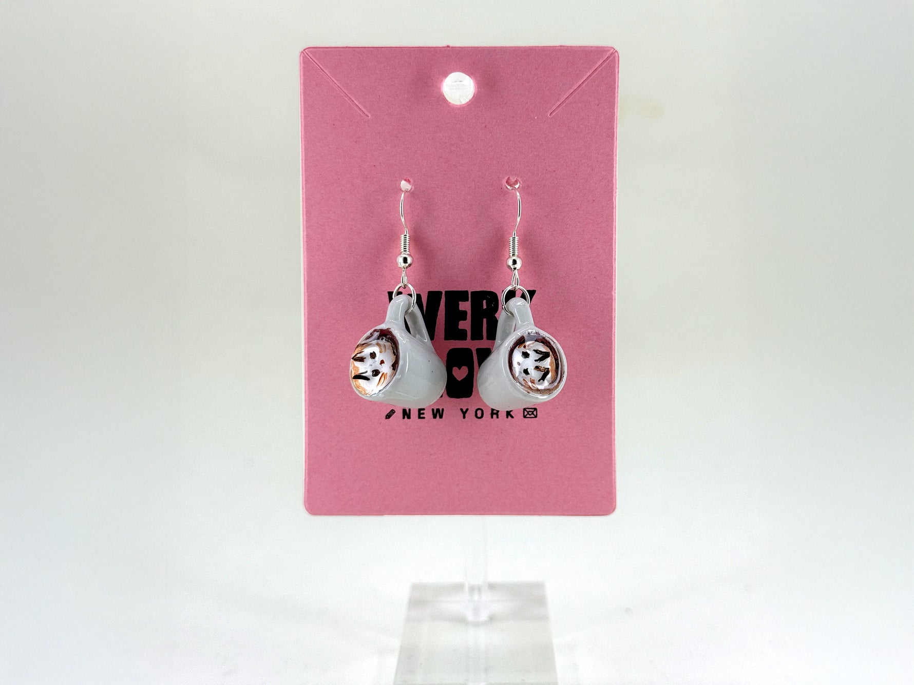 Available as earrings or necklaces, these unique accessories make the purr-fect gift for cat lovers and caffeine fans alike.